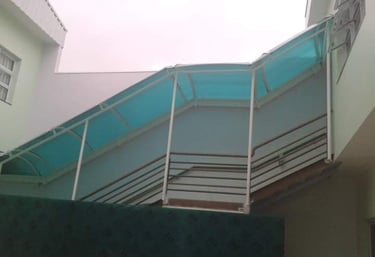 Oferecemos escadas, coberturas e corrimãos, serviços com lona e Serviço de Policarbonato e estrutura de alumínio na eletroestática.